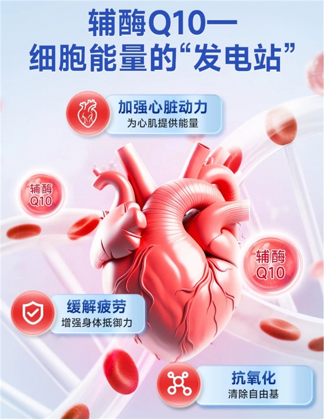 辅酶Q10是心肌细胞的“能量引擎”,心脏每天跳动10万余次,全靠它持续供能;同时它还能清除体内自由基,减少心肌细胞损伤,不管是中老年人预防心脏不适,还是年轻人改善熬夜后的疲惫感,都是刚需营养素。